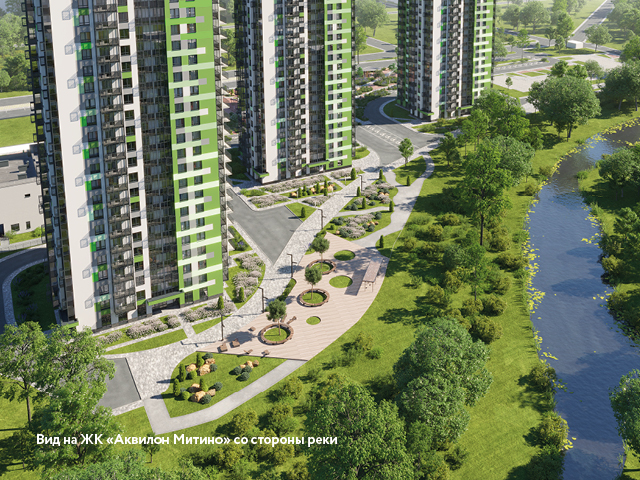 Эко-квартал «Аквилон Митино» – еще один проект застройщика. Четыре высотных дома расположены на берегу реки Сходня и граничат с Новогорским лесопарком. Станция метро в пешей доступности. Помимо прогулочных зон с ландшафтным освещением, в комплексе есть собственные огороды, альпийские горки и спортивные площадки.